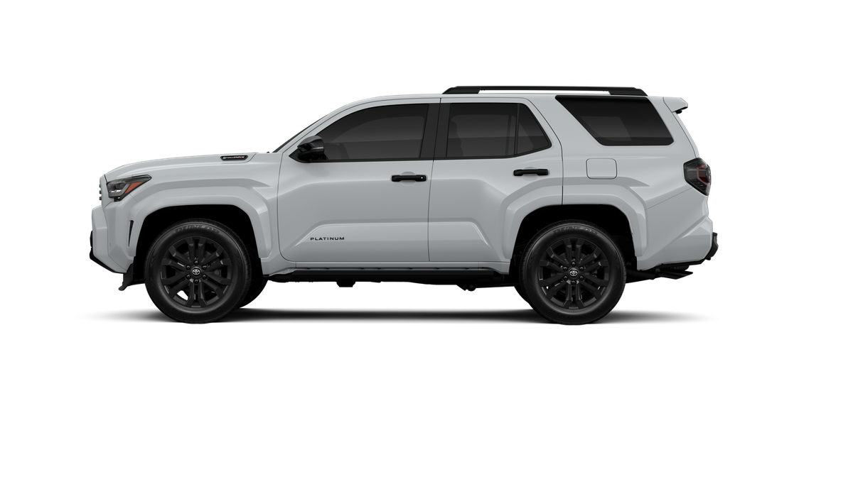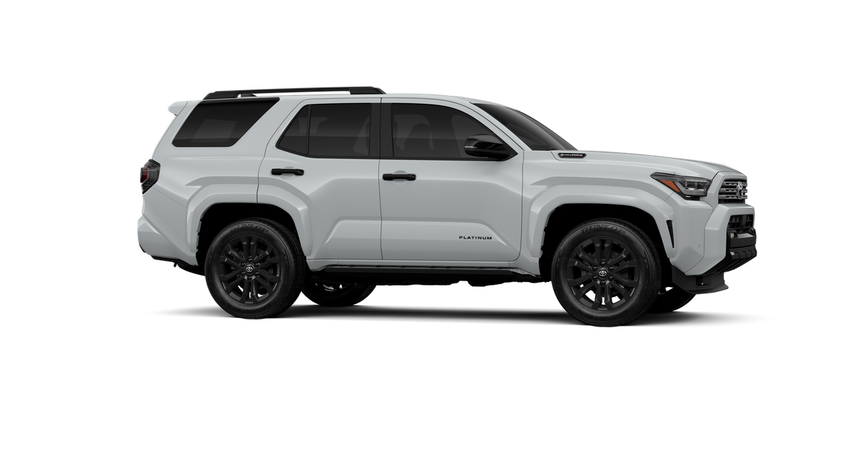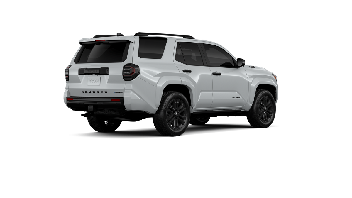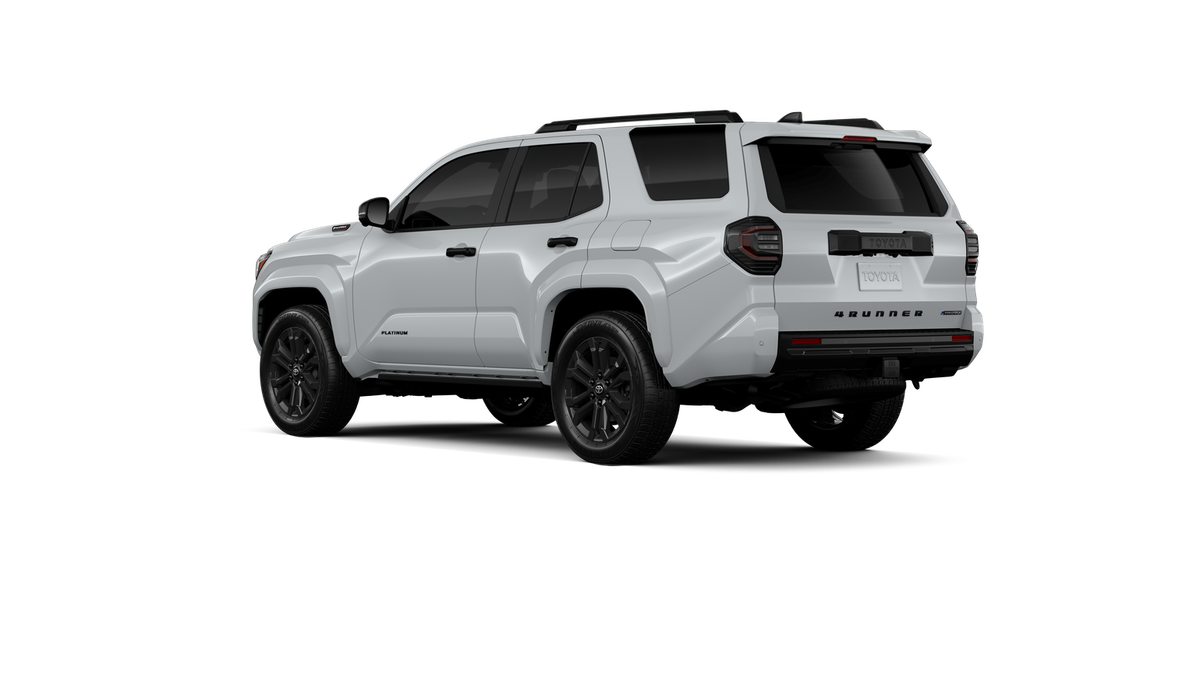 - Dark-chrome tri-bar grille; gloss-black mirror caps and door handles; color-keyed overfenders and rear spoiler; gloss-black "PLATINUM" and "4RUNNER" badges