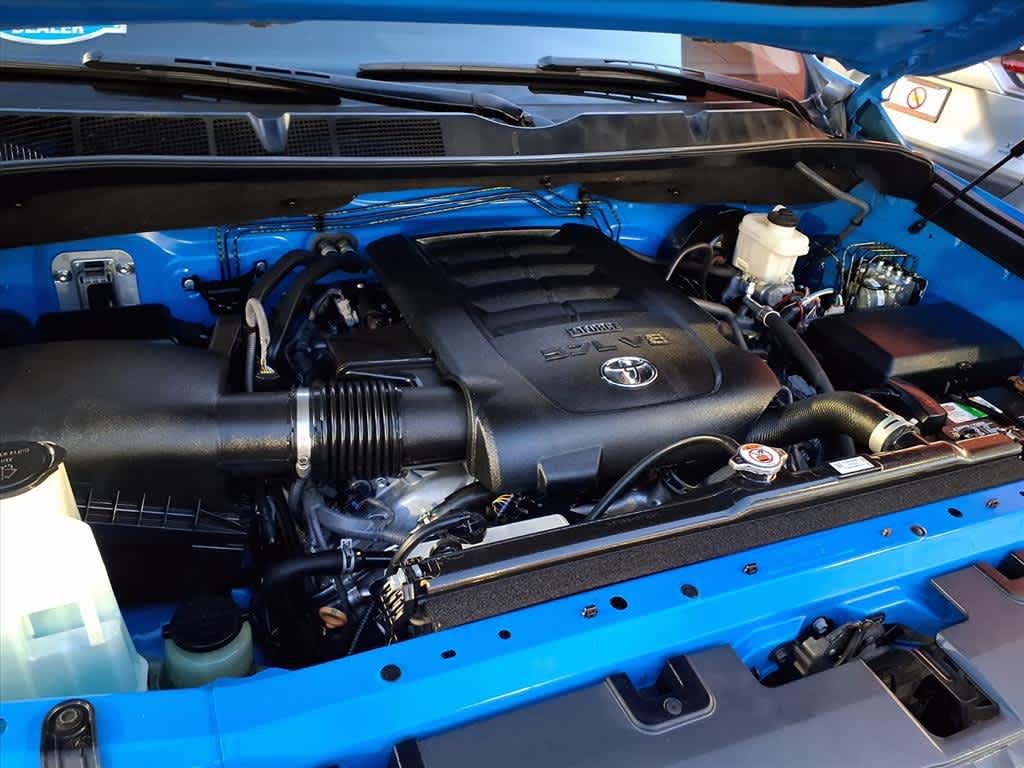 CONVENIENCE EVP EVP 2 value package, SR5 Upgrade Package, front center console w/floor-mounted urethane shift lever/knob and 3 front cupholders, Urethane Tilt/Telescopic 4-Spoke Steering Wheel, audio, multi-information display, Bluetooth®, hands-free phone, voice-command, dynamic radar cruise control and lane departure alert controls, Anti-Theft Immobilizer w/Alarm, engine immobilizer, 38 Gallon Fuel Tank Capacity, Front Bucket Seats, 10-way power-adjustable drivers seat and 4-way manual adjustable front passenger seat, Convenience Package, Front & Rear Clearance Backup Sonar, Blind Spot Monitor w/Rear Cross Traffic Alert, lane change assist, WHEELS: 18 X 8J 5-SPOKE ALUMINUM DISC Tires: P275/65R18 AS BSW, SPRAY-ON BEDLINER (TMS). Toyota SR5 with Voodoo Blue exterior and Black interior features a 8 Cylinder Engine with 381 HP at 5600 RPM*.