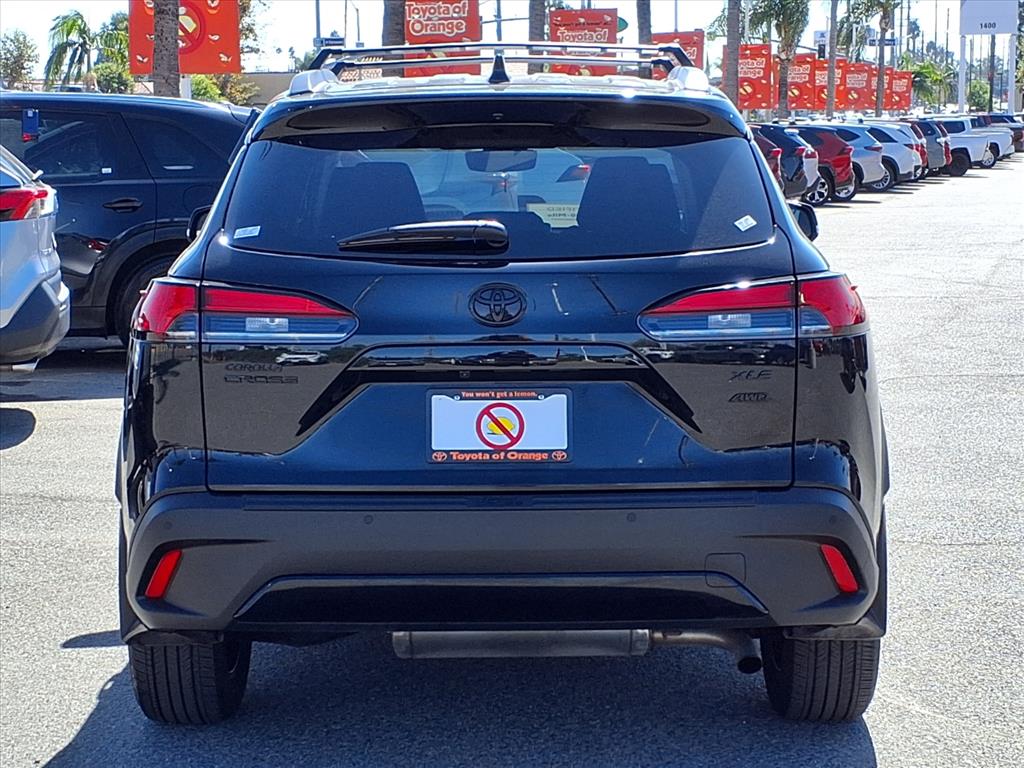 Toyota Certified, CARFAX 1-Owner, Excellent Condition. Moonroof, Heated Seats, Lane Keeping Assist, Keyless Start, Cross-Traffic Alert, Dual Zone A/C, Blind Spot Monitor, Onboard Communications System, All Wheel Drive READ MORE!KEY FEATURES INCLUDEAll Wheel Drive, Heated Driver Seat, Back-Up Camera, iPod/MP3 Input, Onboard Communications System, Aluminum Wheels, Keyless Start, Dual Zone A/C, Cross-Traffic Alert, Lane Keeping Assist, Blind Spot Monitor, WiFi Hotspot, Brake Actuated Limited Slip Differential, Heated Seats Rear Spoiler, MP3 Player, Keyless Entry, Privacy Glass, Steering Wheel Controls.OPTION PACKAGESRADIO: AUDIO PLUS W/9 JBL SPEAKERS 8 touchscreen, subwoofer and amplifier, Apple CarPlay®, Android Auto®, Amazon Alexa compatible and SiriusXM w/3-month all access trial subscription, Remote A/C Package, remote service package, CONVENIENCE PACKAGE PBD Auto & Easy Closer Door, Tilt & Slide Moonroof, CROSS BARS (TMS). Toyota XLE with Jet Black exterior and Black interior features a 4 Cylinder Engine with 169 HP at 6600 RPM*.EXPERTS CONCLUDEGreat Gas Mileage: 32 MPG Hwy.A GREAT TIME TO BUYReduced from $30,899. This Corolla Cross is priced $4,500 below Kelley Blue Book. Approx. Original Base Sticker Price: $32,000*.SHOP WITH CONFIDENCECertified vehicles must pass a thorough 160-point inspection, 7 Year/100,000 Mile Limited Powertrain Warranty, 12-Month/12,000-Mile Limited Comprehensive Warranty, 7 Year Roadside Assistance includes jump starts, lockouts, fuel delivery, flat tire service and more, Free CarFax Vehicle History Report includedOUR OFFERINGSOur customers are our most valuable asset. If you are already a customer, welcome back. If you are new to Toyota of Orange, we would like to convince you to join the ranks of satisfied Toyota of Orange customers.Pricing analysis performed on 11/10/2025. Horsepower calculations based on trim engine configuration. Fuel economy calculations based on original manufacturer data for trim engine configuration. Please confirm the accuracy of the included equipment by calling us prior to purchase.