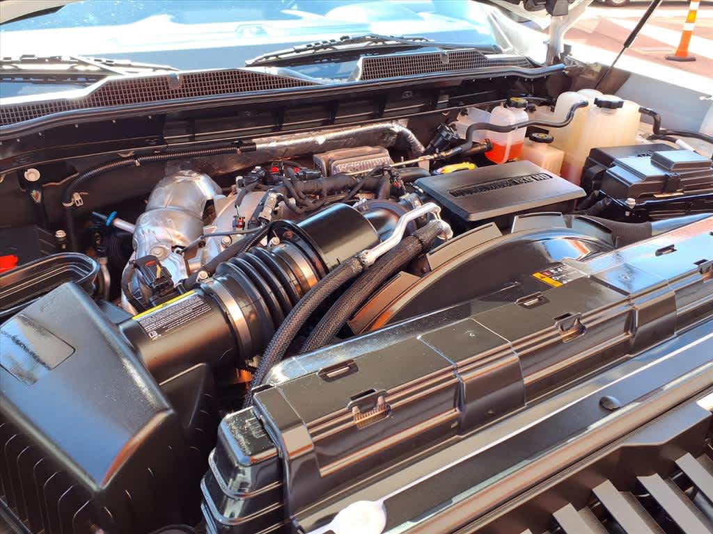 ENGINE, DURAMAX 6.6L TURBO-DIESEL V8 B20-Diesel compatible, (445 hp [332 kW] @ 2800 rpm, 910 lb-ft of torque [1220 Nm] @ 1600 rpm), Z71 OFF-ROAD AND PROTECTION PACKAGE includes (Z71) Off-Road suspension with off-road tuned twin tube shocks, (JHD) Hill Descent Control and (NZZ) skid plates (transfer case and oil pan), (CGN) Chevytec spray-on bedliner, (AAK) All-weather Z71 floor liners, LPO, Z71 grille insert (replaces Bowtie emblem) and Z71 fender badge (replaces 4X4 decal on bed) Includes (PYV) 18 machined aluminum wheels and (QF6) LT275/70R18E all-terrain, blackwall tires. FLEET COMFORT PACKAGE includes (A2X) 10-way power driver seat including power lumbar, (KA1) heated driver and passenger seats, (N37) manual tilt/telescoping steering column, (KI4) 120-volt power outlet, (KC9) 120-volt bed-mounted power outlet, (CJ2) dual-zone automatic climate control and (C49) rear-window defogger, REMOTE START PACKAGE includes (BTV) Remote Start and (C49) rear-window defogger, MIRRORS, OUTSIDE POWER-ADJUSTABLE VERTICAL TRAILERING WITH HEATED AND AUTO-DIMMING UPPER GLASS lower convex mirrors, turn signal indicators, puddle lamps, perimeter lighting, auxiliary lighting, manual folding/manual extending (extends 3.31 [84.25mm]) Includes (DD8) auto-dimming rearview mirror. AUDIO SYSTEM, CHEVROLET INFOTAINMENT 3 SYSTEM 8 diagonal color touchscreen, AM/FM stereo. Additional features for compatible phones include: Bluetooth® audio streaming for 2 active devices, voice command pass-through to phone, wired Apple CarPlay® and Android Auto® capable. (STD), TRANSMISSION, ALLISON 10-SPEED AUTOMATIC. Chevrolet LT with Summit White exterior and Jet Black interior features a 8 Cylinder Engine with 401 HP at 5200 RPM*.