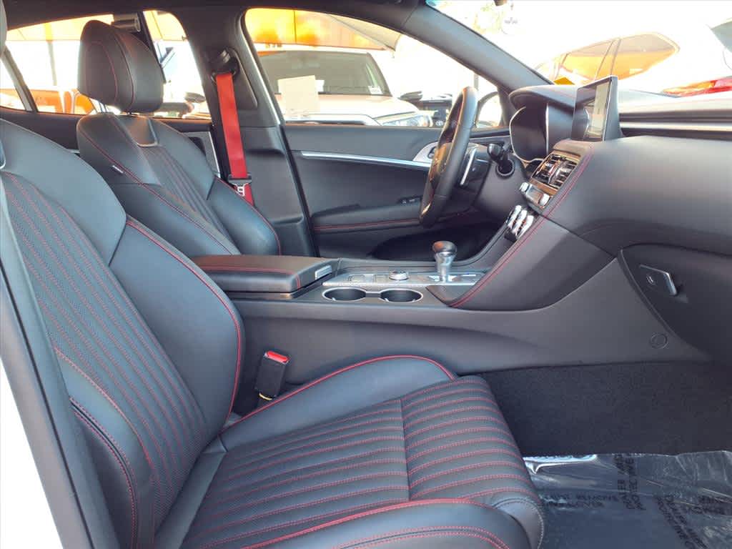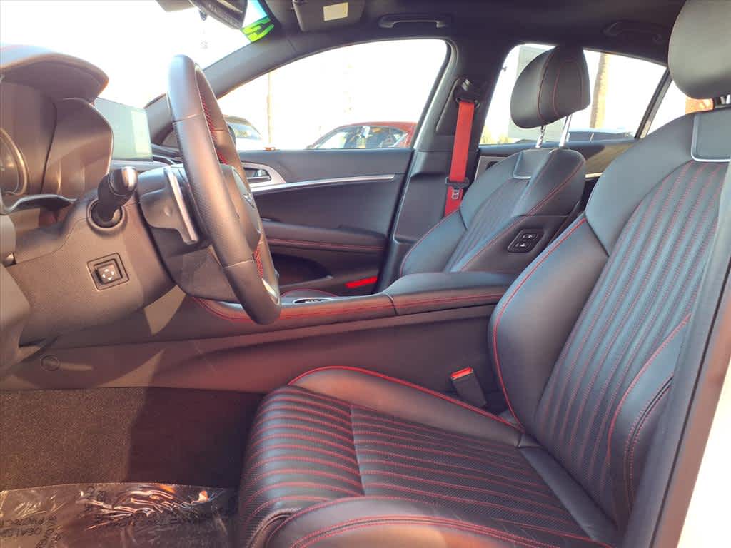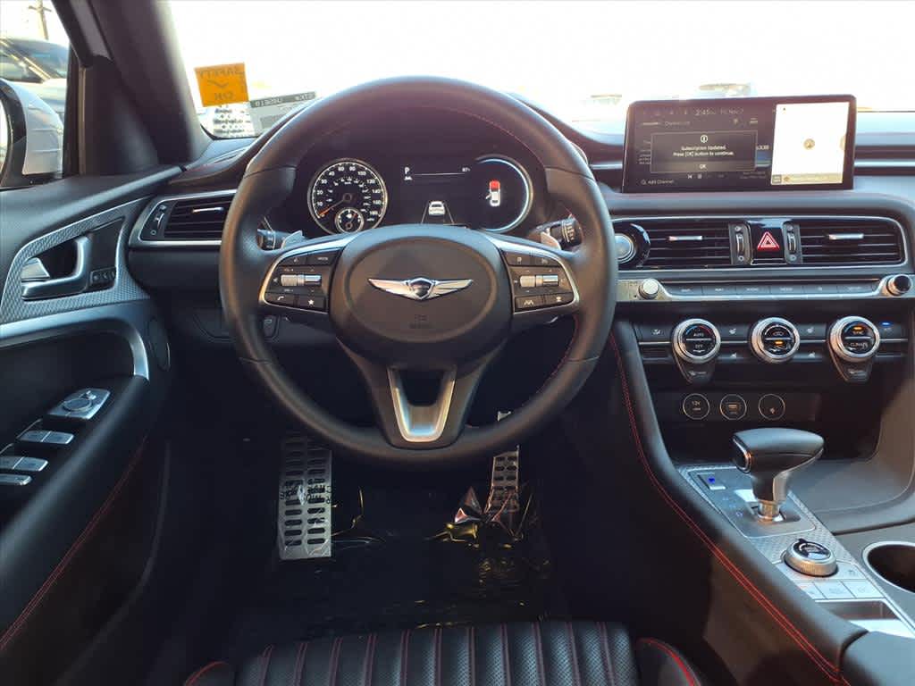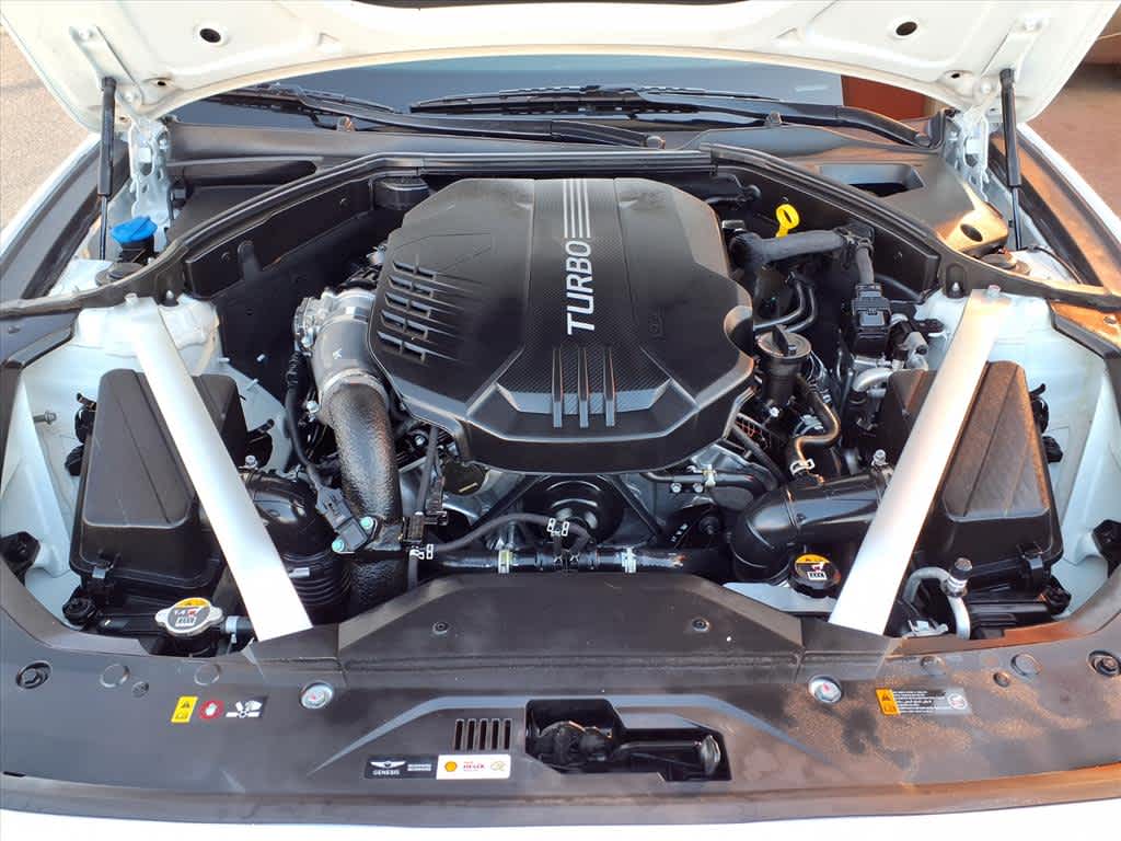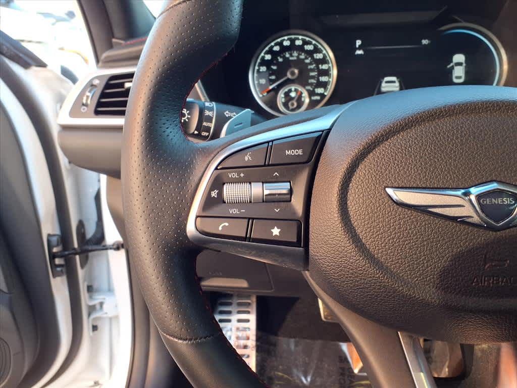 SPORT ADVANCED PACKAGE Option Group 03, Variable Exhaust Valve System, Sport Aluminum Trim, Dark Chrome Grille & Daylight Opening Trim, Forward & Reverse Parking Distance Warning, Acoustic Front Door Glass, Radio: AM/FM/SiriusXM/HD Lexicon Prem Audio System, QuantumLogic surround sound, 15 high efficiency speakers including 2 subwoofers, Lexicon 11-channel digital external amplifier, speed-sensing, 5th generation navigation system w/10.25 touchscreen, dynamic voice recognition, connected routing, over the air updates, Android Auto® and Apple CarPlay®, Bluetooth® hands-free phone and audio streaming system and 4 USB ports, Genesis Digital Key, Wheels: 19 x 8.0J Fr & 19 x 8.5J Rr Sport Alloy, Power Driver Seat Bolster & Cushion Extension, Alloy Pedals, Ventilated Front Seats, Wireless. Genesis 3.3T with Uyuni White exterior and Obsidian Black/Red Stitch interior features a V6 Cylinder Engine with 365 HP at 6000 RPM*.
