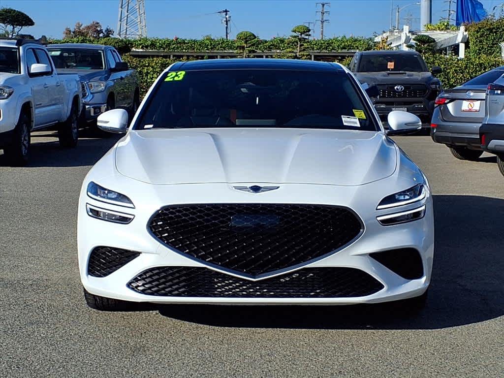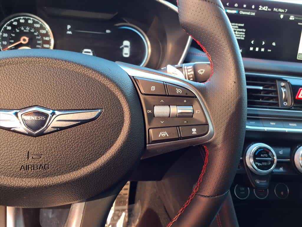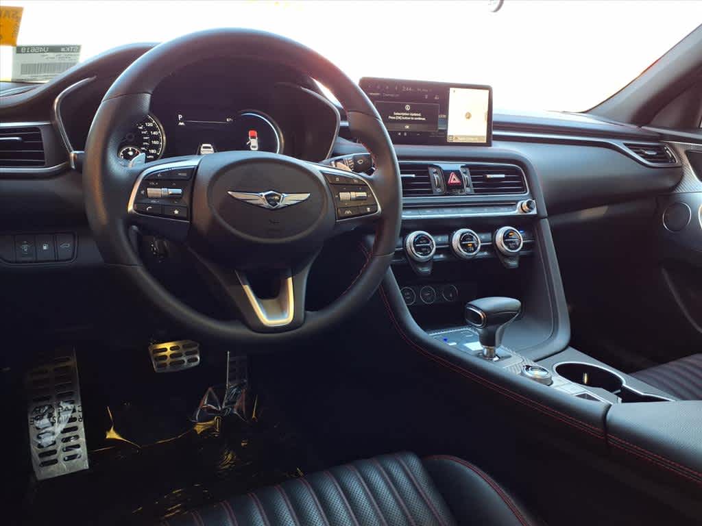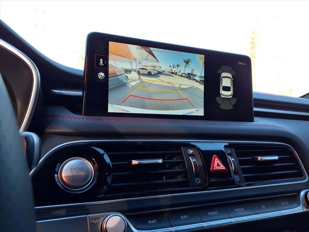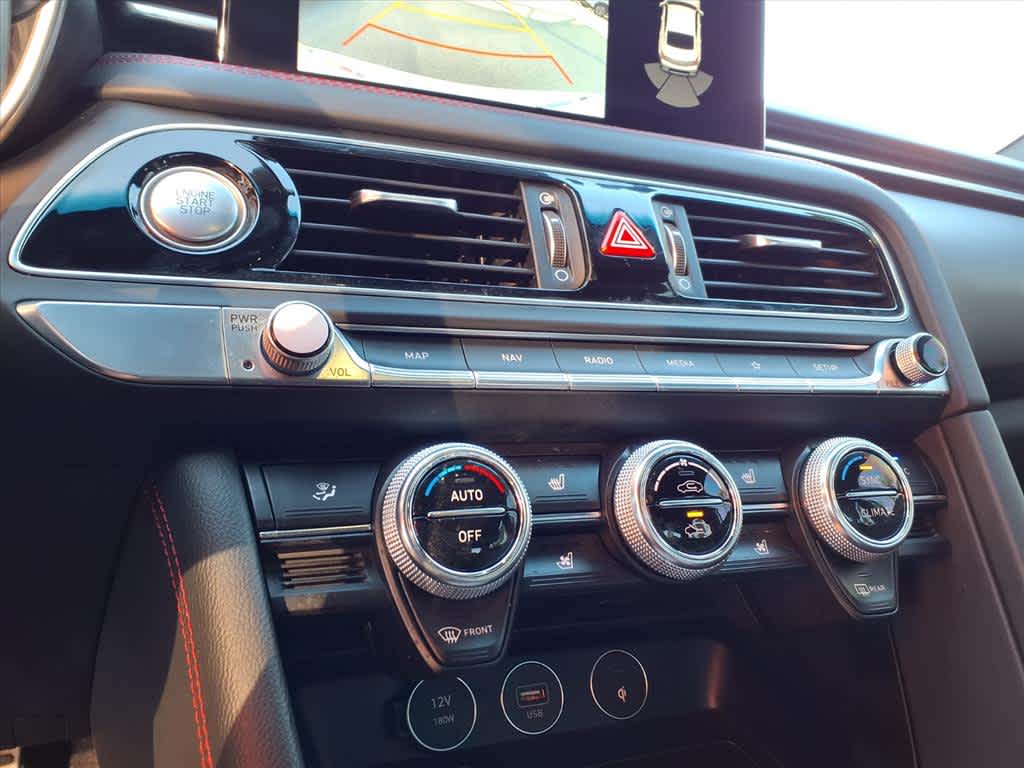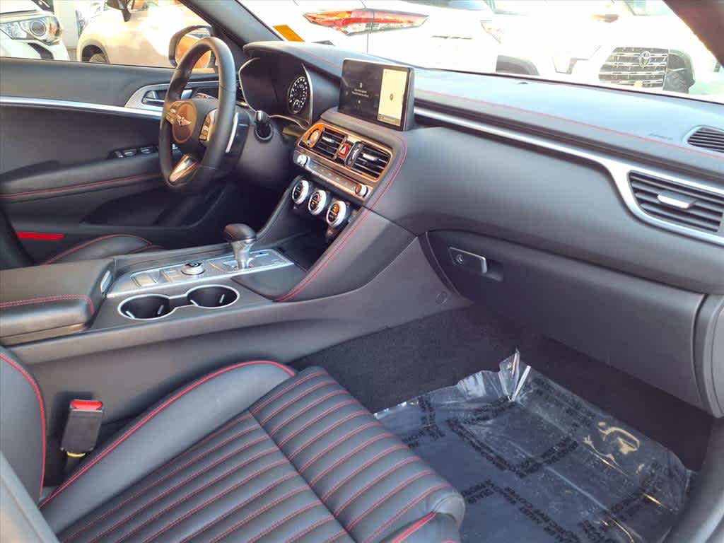 SPORT ADVANCED PACKAGE Option Group 03, Variable Exhaust Valve System, Sport Aluminum Trim, Dark Chrome Grille & Daylight Opening Trim, Forward & Reverse Parking Distance Warning, Acoustic Front Door Glass, Radio: AM/FM/SiriusXM/HD Lexicon Prem Audio System, QuantumLogic surround sound, 15 high efficiency speakers including 2 subwoofers, Lexicon 11-channel digital external amplifier, speed-sensing, 5th generation navigation system w/10.25 touchscreen, dynamic voice recognition, connected routing, over the air updates, Android Auto® and Apple CarPlay®, Bluetooth® hands-free phone and audio streaming system and 4 USB ports, Genesis Digital Key, Wheels: 19 x 8.0J Fr & 19 x 8.5J Rr Sport Alloy, Power Driver Seat Bolster & Cushion Extension, Alloy Pedals, Ventilated Front Seats, Wireless. Genesis 3.3T with Uyuni White exterior and Obsidian Black/Red Stitch interior features a V6 Cylinder Engine with 365 HP at 6000 RPM*.
