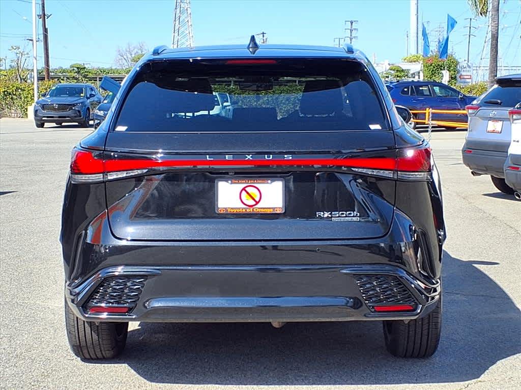 RADIO: LEXUS INTERFACE W/MARK LEVINSON AUDIO 14 multimedia touchscreen display, 21 speakers, 3-year trial of Drive Connect w/Cloud Navigation, Intelligent Assistant (Hey Lexus) and Destination Assist (available by subscription), PREMIUM TRIPLE-BEAM LED HEADLAMPS Auto High Beam, Headlamp Cleaner, HEATED AND VENTILATED REAR SEATS, TRAFFIC JAM ASSIST Lane Change Assist and Lane Keeping Assist, PANORAMA GLASS MOONROOF. Lexus RX 500h F SPORT Performance with Caviar exterior and BLACK W/ DARK GRAPHITE ALUMINUM interior features a 4 Cylinder Engine with 366 HP at 6000 RPM*.