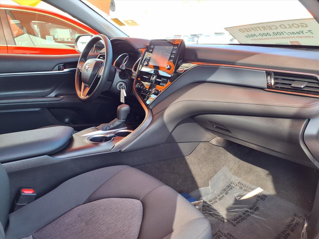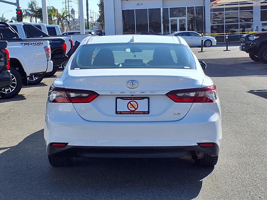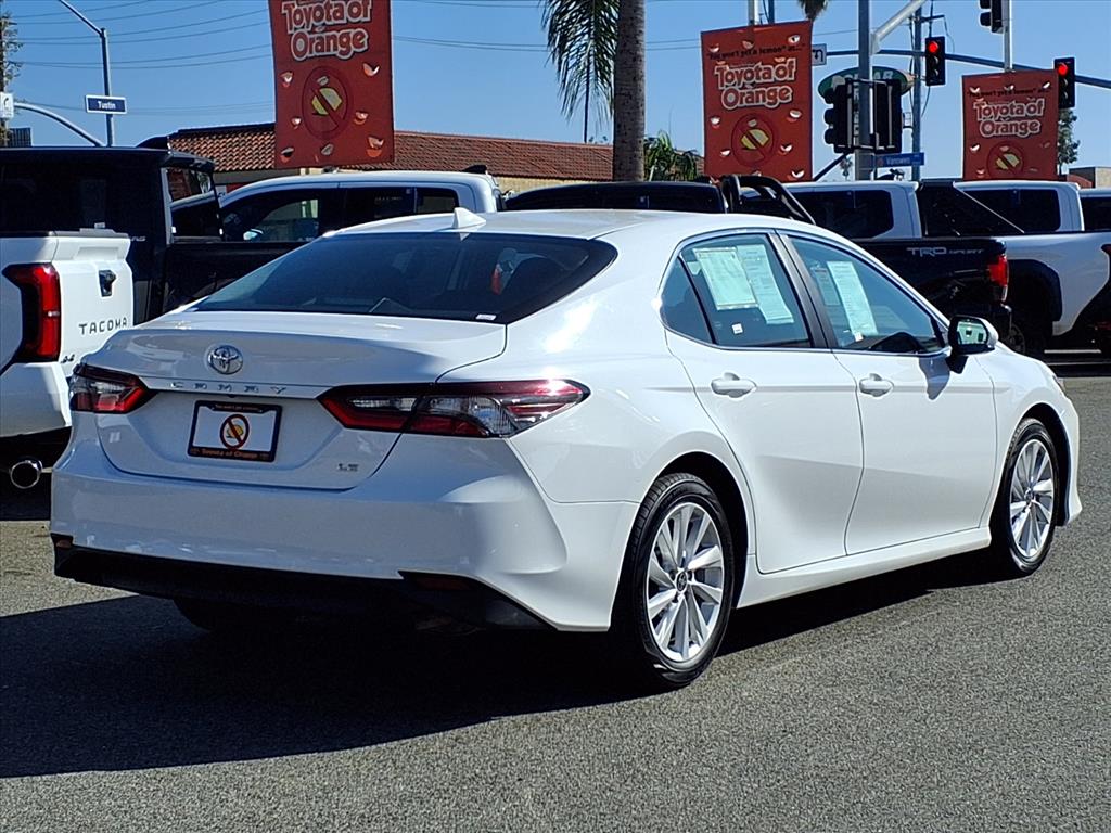 CARFAX 1-Owner, Toyota Certified, Excellent Condition. WiFi Hotspot, Lane Keeping Assist, Smart Device Integration, Apple CarPlay®, Dual Zone A/C, iPod/MP3 Input, Satellite Radio, Back-Up Camera, Aluminum Wheels. SEE MORE!KEY FEATURES INCLUDEBack-Up Camera, Satellite Radio, iPod/MP3 Input, Onboard Communications System, Aluminum Wheels, Dual Zone A/C, Apple CarPlay®, Smart Device Integration, Lane Keeping Assist, WiFi Hotspot. MP3 Player, Remote Trunk Release, Keyless Entry, Child Safety Locks, Steering Wheel Controls. Toyota LE with Ice Cap exterior and Black interior features a 4 Cylinder Engine with 203 HP at 6600 RPM*.EXPERTS REPORTGreat Gas Mileage: 39 MPG Hwy.A GREAT TIME TO BUYWas $26,899. This Camry is priced $3,100 below Kelley Blue Book. Approx. Original Base Sticker Price: $29,000*.SHOP WITH CONFIDENCECARFAX 1-Owner AutoCheck One Owner Certified vehicles must pass a thorough 160-point inspection, 7 Year/100,000 Mile Limited Powertrain Warranty, 12-Month/12,000-Mile Limited Comprehensive Warranty, 7 Year Roadside Assistance includes jump starts, lockouts, fuel delivery, flat tire service and more, Free CarFax Vehicle History Report includedWHO WE AREOur customers are our most valuable asset. If you are already a customer, welcome back. If you are new to Toyota of Orange, we would like to convince you to join the ranks of satisfied Toyota of Orange customers.Pricing analysis performed on 11/10/2025. Horsepower calculations based on trim engine configuration. Fuel economy calculations based on original manufacturer data for trim engine configuration. Please confirm the accuracy of the included equipment by calling us prior to purchase.