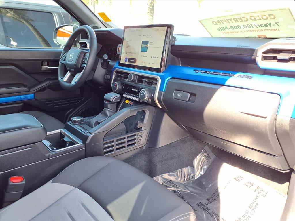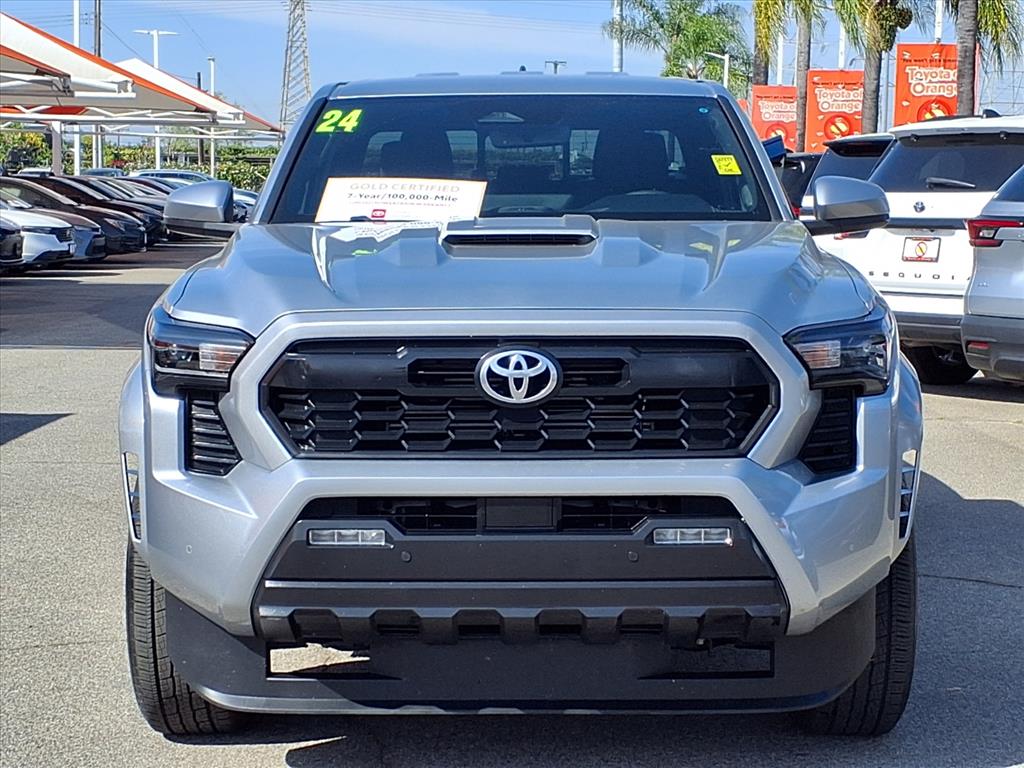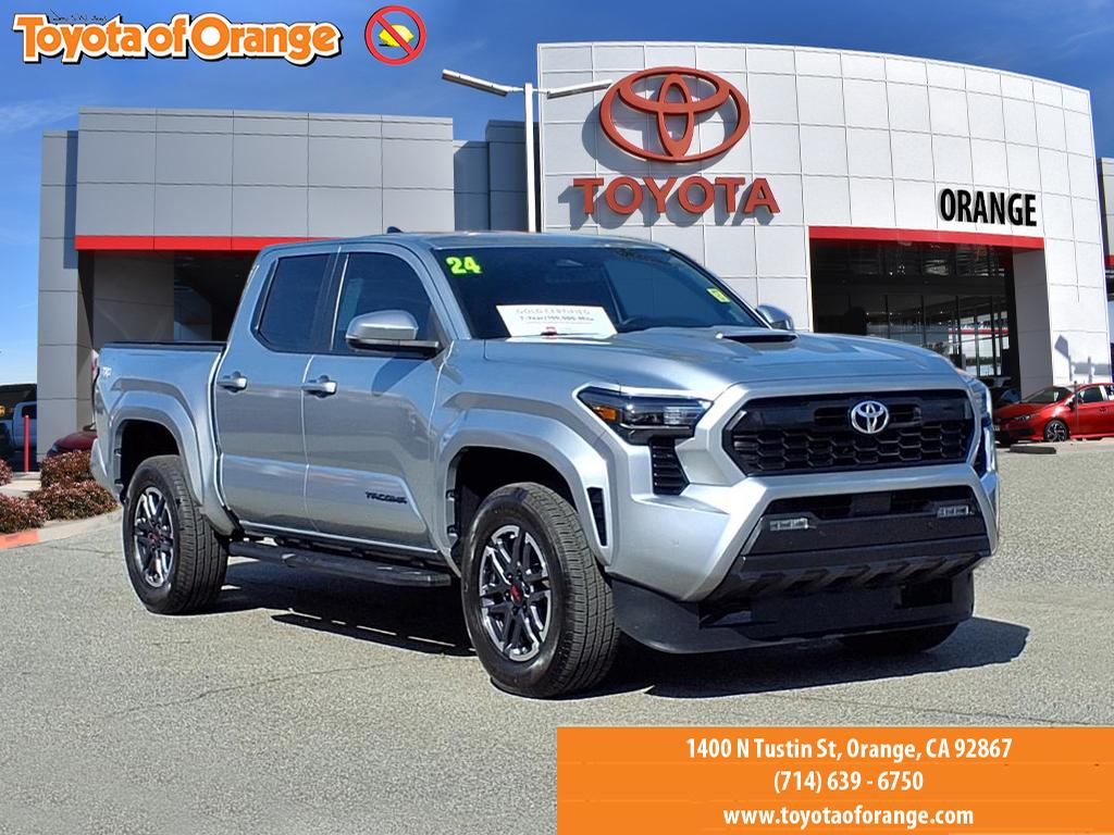 Toyota Certified, Excellent Condition. Heated Seats, Blind Spot Monitor, Cross-Traffic Alert, WiFi Hotspot, Keyless Start, Onboard Communications System, iPod/MP3 Input, Bed Liner, Aluminum Wheels, Trailer Hitch, Back-Up Camera READ MORE!KEY FEATURES INCLUDEBack-Up Camera, iPod/MP3 Input, Onboard Communications System, Trailer Hitch, Aluminum Wheels, Keyless Start, WiFi Hotspot, Cross-Traffic Alert, Blind Spot Monitor, Lane Keeping Assist, Brake Actuated Limited Slip Differential MP3 Player, Privacy Glass, Child Safety Locks, Steering Wheel Controls, Heated Mirrors.OPTION PACKAGESTRD SPORT UPGRADE PACKAGE 120V/400W AC Power Inverter, Heated Front Seats, Front & Rear Parking Assist w/Automatic Braking, Digital Key Capability, Digital key enables smartphone to be used instead of a physical key (Remote Connect subscription required), JBL Premium Audio, 10 speakers w/JBL FLEX portable Bluetooth® speaker, subwoofer and amplifier, Integrated Trailer Brake Controller, multi-information display (MID) screen and trailer brake type, gain and manual trailer brake output controls, 8-Way Power Driver & Passenger Seat Adjusters, Heated Leather-Trimmed Steering Wheel, Qi-Compatible Wireless Charging, Power Horizontal Rear Window, CAST ALUMINUM RUNNING BOARDS (TMS), RADIO: 14 TOYOTA AUDIO MULTIMEDIA (EF) touchscreen, wireless Apple CarPlay® and Android Auto® compatibility and SiriusXM w/3-month Platinum Plan trial subscription, See toyota.com/audio-multimedia for details, SPRAY-ON BED LINER (TMS). Toyota TRD Sport with Celestial Silver Metallic exterior and Black interior features a 4 Cylinder Engine with 278 HP at 6000 RPM*.AFFORDABLEThis Tacoma is priced $500 below Kelley Blue Book.SHOP WITH CONFIDENCECertified vehicles must pass a thorough 160-point inspection, 7 Year/100,000 Mile Limited Powertrain Warranty, 12-Month/12,000-Mile Limited Comprehensive Warranty, 7 Year Roadside Assistance includes jump starts, lockouts, fuel delivery, flat tire service and more, Free CarFax Vehicle History Report includedBUY FROM AN AWARD WINNING DEALEROur customers are our most valuable asset. If you are already a customer, welcome back. If you are new to Toyota of Orange, we would like to convince you to join the ranks of satisfied Toyota of Orange customers.Pricing analysis performed on 3/10/2026. Horsepower calculations based on trim engine configuration. Please confirm the accuracy of the included equipment by calling us prior to purchase.