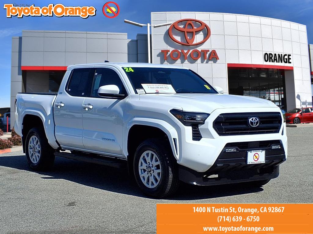 CARFAX 1-Owner, Toyota Certified, Excellent Condition. Heated Seats, Keyless Start, Onboard Communications System, iPod/MP3 Input, Satellite Radio, Back-Up Camera, Bed Liner, Aluminum Wheels, Hitch, BLACK OVAL TUBE STEP (TMS) AND MORE!KEY FEATURES INCLUDEBack-Up Camera, Turbocharged, Satellite Radio, iPod/MP3 Input, Onboard Communications System, Trailer Hitch, Aluminum Wheels, Keyless Start, Lane Keeping Assist, Apple CarPlay®, WiFi Hotspot, Smart Device Integration, Brake Actuated Limited Slip Differential, Cross-Traffic Alert, Blind Spot Monitor. MP3 Player, Privacy Glass, Steering Wheel Controls, Child Safety Locks, Electronic Stability Control.OPTION PACKAGESSR5 UPGRADE PACKAGE & COLD WEATHER PACKAGE 245/70R17 Spare Tire, HomeLink Universal Transceiver, Automatic Climate Control, air filtration and combined temperature settings for driver and front passenger, Integrated Trailer Brake Controller, multi-information display (MID) screen and trailer brake type, gain and manual trailer brake output controls, LED Bed Lighting, Heated Leather-Trimmed Steering Wheel, Qi-Compatible Wireless Charging, Power Horizontal Rear Window, TACOMA Stamped Easy Lower & Lift Tailgate, damper, Heated Front Seats, Front & Rear Parking Assist w/Automatic Braking, Digital Key Capability, Digital key enables smartphone to be used instead of a physical key (Remote Connect subscription required), JBL Premium Audio, 10 speakers w/JBL FLEX portable Bluetooth® speaker, BLACK OVAL TUBE STEP (TMS), SPRAY-ON BED LINER (TMS). Toyota SR5 with Ice Cap exterior and Black interior features a 4 Cylinder Engine with 278 HP at 6000 RPM*.PURCHASE WITH CONFIDENCECARFAX 1-Owner AutoCheck One Owner Certified vehicles must pass a thorough 160-point inspection, 7 Year/100,000 Mile Limited Powertrain Warranty, 12-Month/12,000-Mile Limited Comprehensive Warranty, 7 Year Roadside Assistance includes jump starts, lockouts, fuel delivery, flat tire service and more, Free CarFax Vehicle History Report includedBUY FROM AN AWARD WINNING DEALEROur customers are our most valuable asset. If you are already a customer, welcome back. If you are new to Toyota of Orange, we would like to convince you to join the ranks of satisfied Toyota of Orange customers.Pricing analysis performed on 3/2/2026. Horsepower calculations based on trim engine configuration. Please confirm the accuracy of the included equipment by calling us prior to purchase.