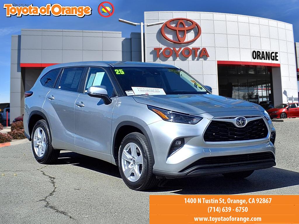 Toyota Certified, CARFAX 1-Owner, Excellent Condition. Third Row Seat, Blind Spot Monitor, Dual Zone A/C, Keyless Start, Onboard Communications System, iPod/MP3 Input, Rear Air, Back-Up Camera, Power Liftgate, Aluminum Wheels READ MORE!KEY FEATURES INCLUDEThird Row Seat, Power Liftgate, Rear Air, Back-Up Camera, Turbocharged, Satellite Radio, iPod/MP3 Input, Onboard Communications System, Aluminum Wheels, Keyless Start, Dual Zone A/C, Blind Spot Monitor, Lane Keeping Assist, Smart Device Integration, WiFi Hotspot Rear Spoiler, MP3 Player, Privacy Glass, Remote Trunk Release, Keyless Entry. Toyota LE with Celestial Silver Metallic exterior and Black interior features a 4 Cylinder Engine with 265 HP at 6000 RPM*.PURCHASE WITH CONFIDENCEAutoCheck One Owner Certified vehicles must pass a thorough 160-point inspection, 7 Year/100,000 Mile Limited Powertrain Warranty, 12-Month/12,000-Mile Limited Comprehensive Warranty, 7 Year Roadside Assistance includes jump starts, lockouts, fuel delivery, flat tire service and more, Free CarFax Vehicle History Report includedMORE ABOUT USOur customers are our most valuable asset. If you are already a customer, welcome back. If you are new to Toyota of Orange, we would like to convince you to join the ranks of satisfied Toyota of Orange customers.Pricing analysis performed on 4/5/2026. Horsepower calculations based on trim engine configuration. Please confirm the accuracy of the included equipment by calling us prior to purchase.