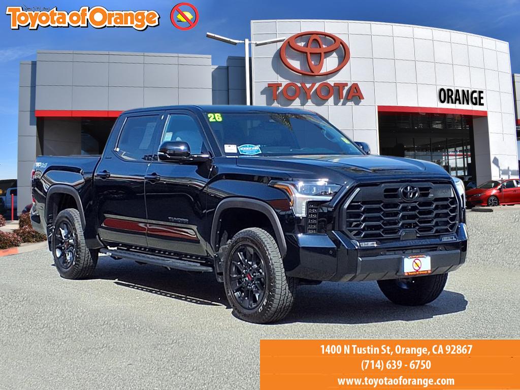 Very Nice, CARFAX 1-Owner. EPA 22 MPG Hwy/17 MPG City! Heated/Cooled Leather Seats, Navigation, Bed Liner, Onboard Communications System, iPod/MP3 Input, Satellite Radio, 4x4, HEATED LEATHER STEERING WHEEL, TRD OFF-ROAD PACKAGE SEE MORE!KEY FEATURES INCLUDELeather Seats, Navigation, 4x4, Heated Driver Seat, Cooled Driver Seat, Satellite Radio, iPod/MP3 Input, Onboard Communications System, Trailer Hitch, Keyless Start, Dual Zone A/C, Brake Actuated Limited Slip Differential, Apple CarPlay®, Blind Spot Monitor, WiFi Hotspot MP3 Player, Keyless Entry, Privacy Glass, Steering Wheel Controls, Child Safety Locks.OPTION PACKAGESTRD OFF-ROAD PACKAGE TRD grille, TRD off-road suspension, skid plates, mud guards, TRD leather shift knob, electronic rear differential lock and Multi-Terrain Select (MTS), Wheels: 20 TRD Alloy, Tires: 265/60R20 All-Terrain, Multi-Terrain Back Monitor, NON-SKID SPRAY-ON BED LINER (TMS), JBL PREMIUM AUDIO 12 speakers, subwoofer and amplifier, PREMIUM PACKAGE Towing Package, High Grade Full LED Headlamp, ALL WEATHER FLOOR LINERS (TMS), HEATED LEATHER STEERING WHEEL. Toyota Limited with Midnight Black Metallic exterior and GRAY interior features a V6 Cylinder Engine with 389 HP at 5200 RPM*.VEHICLE REVIEWSGreat Gas Mileage: 22 MPG Hwy.AFFORDABLEWas $60,899. This Tundra is priced $3,100 below Kelley Blue Book. Approx. Original Base Sticker Price: $63,000*.BUY WITH CONFIDENCEAutoCheck One Owner Very NiceOUR OFFERINGSOur customers are our most valuable asset. If you are already a customer, welcome back. If you are new to Toyota of Orange, we would like to convince you to join the ranks of satisfied Toyota of Orange customers.Pricing analysis performed on 3/17/2026. Horsepower calculations based on trim engine configuration. Fuel economy calculations based on original manufacturer data for trim engine configuration. Please confirm the accuracy of the included equipment by calling us prior to purchase.